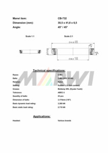 Steuerlager CB-732 30,5×41,8×6,5 45°/45°
